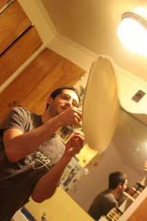 My friend Trevor made us some tasty homemade pizza..I forgot to take pictures of the finished products, but they were amazing…All ingredients were homemade (including the marinara and pesto)