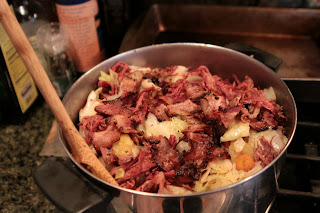 In addition to this delicious stew, I made Corned Beef and Cabbage…I browsed a few recipes and then sort of put some together. I bought uncured cook Corned Beef Brisket from Trader Joe’s because they were sampling it and it was great. Seemed easy enough. I prepared it with a head of cabbage, applewood smoked bacon (HIGHLY recommended),potatoes, carrots, celery, all purpose seasoning, a little bit of beef broth. Mmmm it was delightful. I’ve never had corned beef and cabbage but my friends who have said it was very tasty. So that’s good.