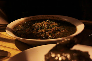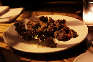 Any way, my good friend Ben suggested Toulouse Petit for an early dinner for us. All he had to say was cajun and I was hooked. Upon arrival, I was a little taken back by how classy the place looked. Candlelight glow seemed to be the only source of light, until I noticed the glass blown light fixtures above every table and booth. Which was equally as dim. To quote one of my favorite bands (enter shameless plug), The Senate, there was definitely some “sexy ambiance” going on. Actually, the mention of The Senate, isn’t so random for this entry, if it weren’t for one of the members, Nick Drummond, I would’ve never gone to New Orleans to experience all its majesties. So check them out, if you’re lucky you can hear their reunion on Feb. 6 at The Triple Door (my favorite Seattle music venue…I’ll probably write a review after I go in a couple weeks so you can hear how wonderful it is).