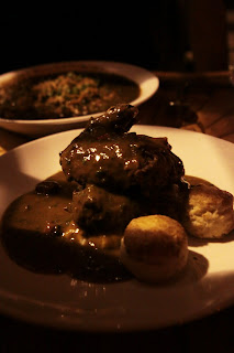 I had a Buttermilk-fresh Herb Fried Game Hen with a Black Pepper-Tasso Gravy (A sexed up version of the ubiquitous southern favorite with pureed potatoes and mini buttermilk biscuits) $14.00