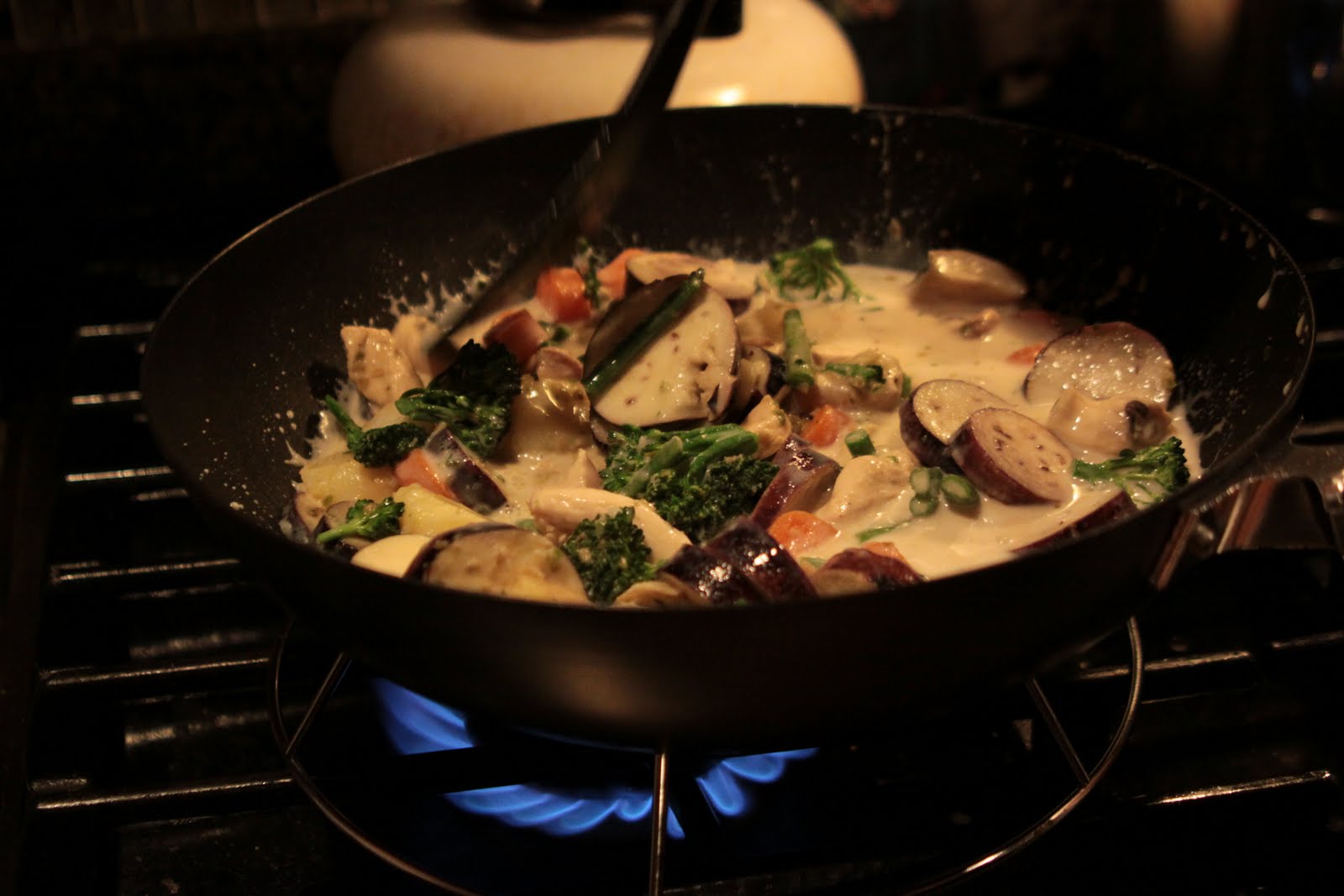 Pretty soon the food was ready. What was really interesting is that Ryan made two batches. One he forgot to put sugar into and the second he did. It was amazing how much the sugar changed the taste of the curry. It tasted wonderfully without, but WITH the sugar, it was like all the flavors came together…it was amazing!