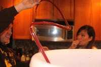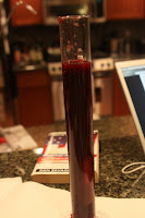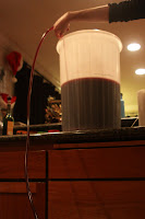 So after a week, we (minus Meghan because she’s too busy getting sunburned in New Zealand – plus my friend Sam, who was visiting from Texas) checked the wine to make sure it had reached the correct gravity. Opening the container was an interesting experience…it didn’t smell fantastic, but at least we knew the yeast was working!