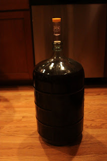 Once the jug was filled, we added the bung (basically a large cork with a plastic thin on top that keeps air out). And we’ll wait another 10 days. Unfortunately, we seemed to have lost the top that goes to the bung…but we found something that kind of works. So we’ll see…
