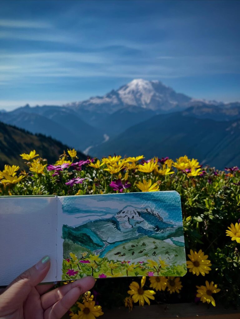 - Trying water coloring for the first time at Mt. Rainier.