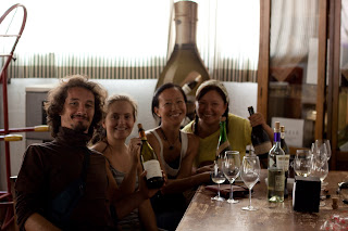 Some of the bottles sit for 5 years before they are ready to sell. They also showed us a cool machine that froze the tips of the bottles, where the yeast is, so they can pop it out and top it off before bottling it.