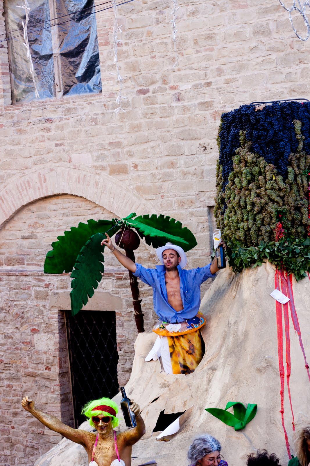 Closing day. We were all a bit tired. I slept pretty awful because I switched rooms and the music went all night and then the cleaning began and the garbage trucks and the beeping and then the band practice across the street and then the band playing in a parade…I gave up on trying to sleep. After a tasty breakfast ommlette with onions, proscuitto, mushrooms, rosemary and swiss…I took a nap. Eventually got up again just in time for the parade! What is funny about this parade is that it seemed ot me it was a parade just for 20 and 30-year-olds to build floats and party. Because that’s exactly what they did.